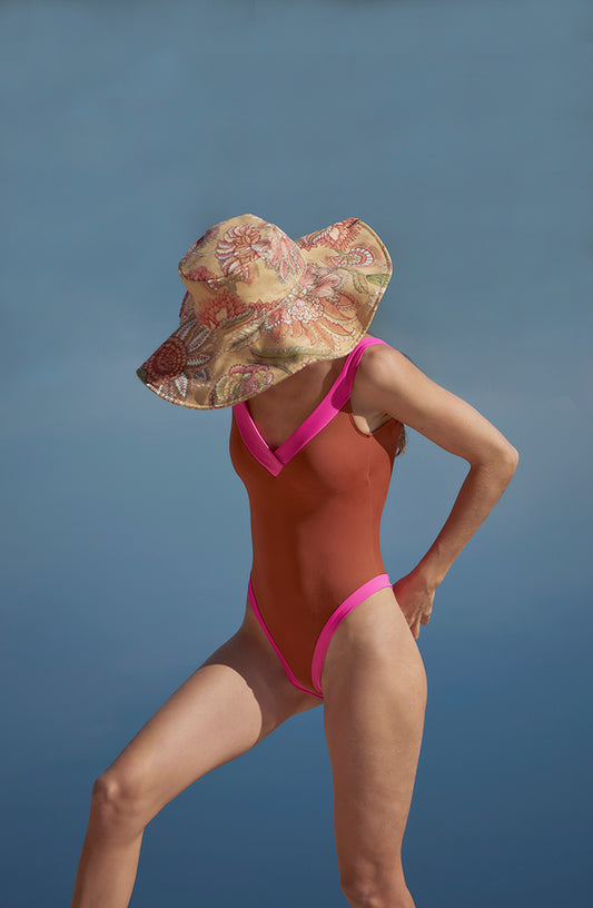 Sombrero Pamela reversible maxi spirulina rosa-naranja