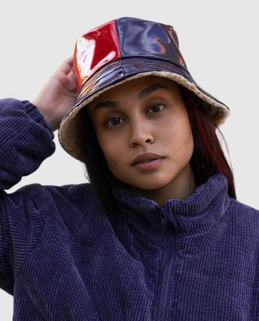 Sombrero Bucket Charolito S bicolor azul-rojo